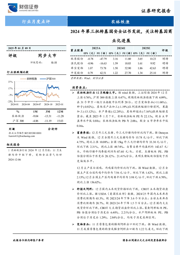 【财信证券】【20250109】2024年第三批转基因安全证书发放,关注转基因商业化进展-22页
