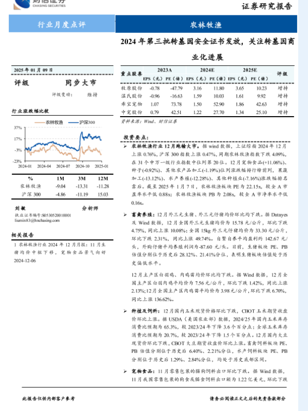 农林牧渔 宠物食品 生猪养殖 行业月度点评 转基因