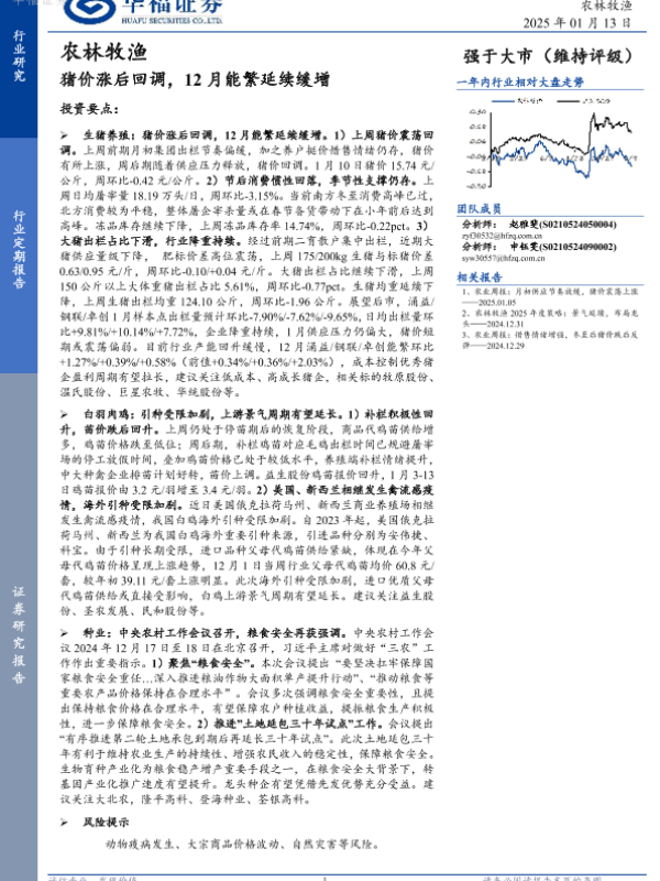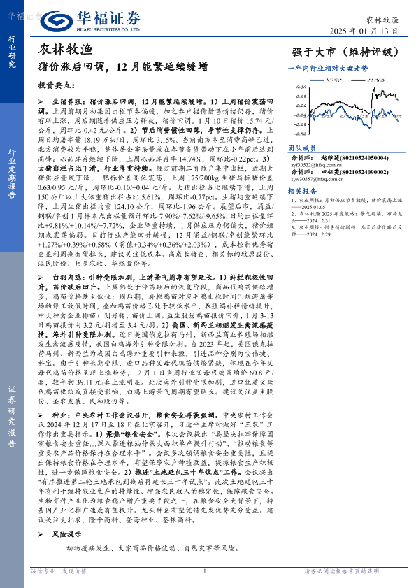 【华福证券】【20250113】农林牧渔:猪价涨后回调,12月能繁延续缓增-12页