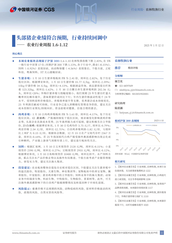 【银河证券】【20250112】中国银河-农业行业周报:头部猪企业绩符合预期,行业持续回调中-14页