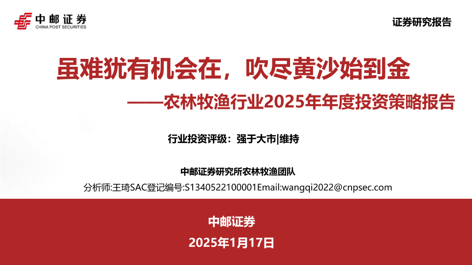 【中邮证券】【20250117】虽难犹有机会在,吹尽黄沙始到金——农林牧渔行业2025年年度投资策略报告-37页