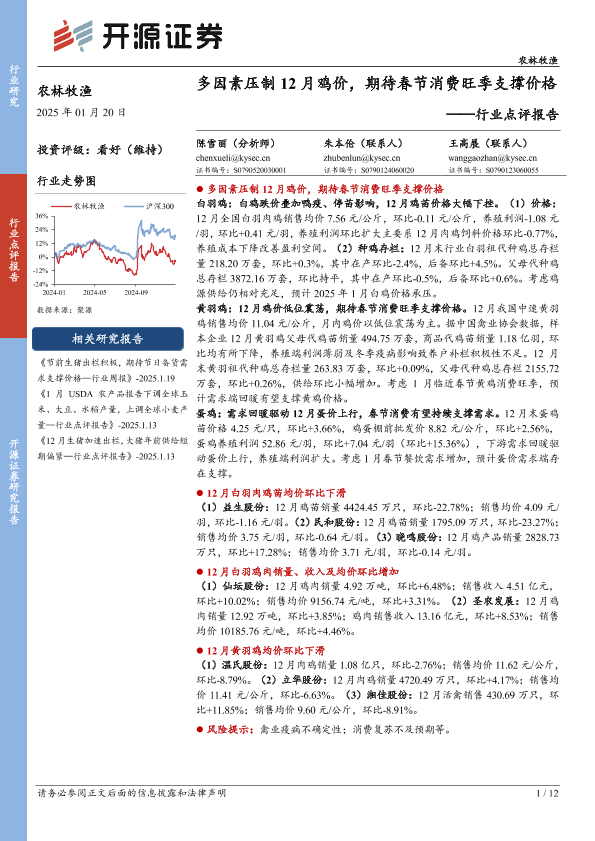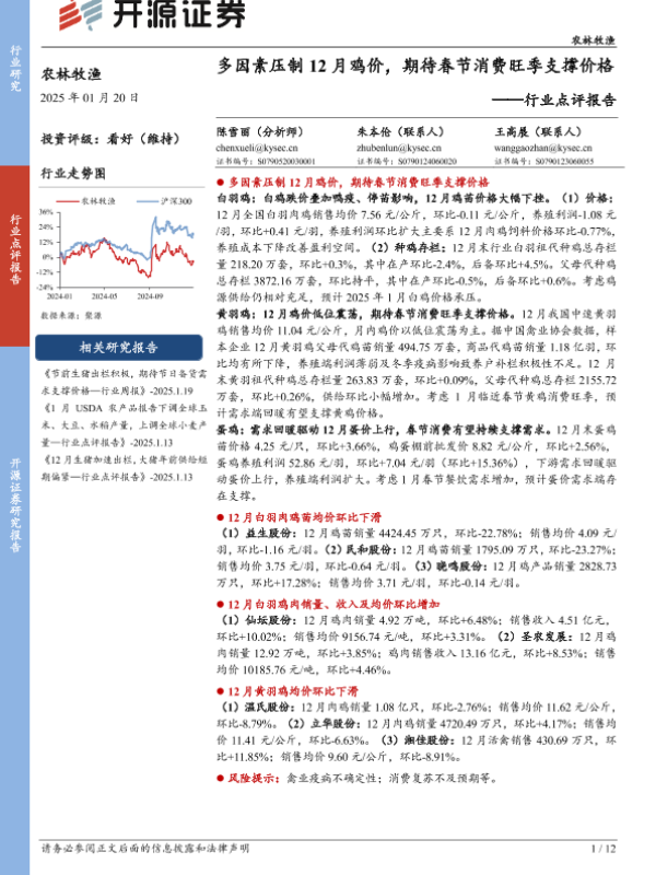 【开源证券】【20250120】多因素压制12月鸡价,期待春节消费旺季支撑价格-12页