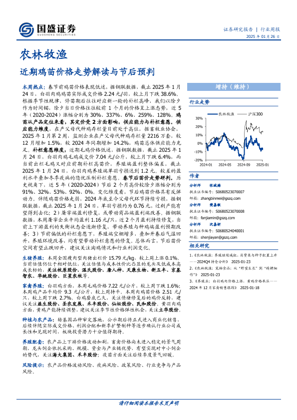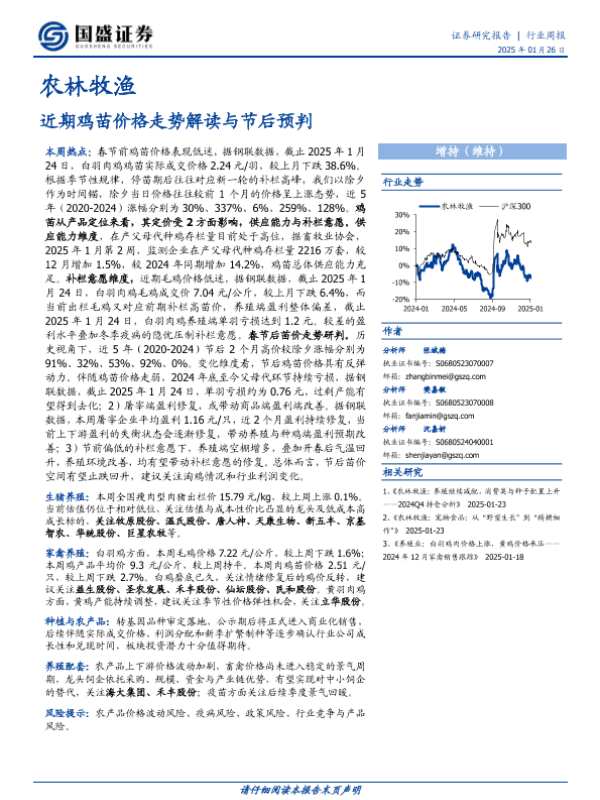 【国盛证券】【20250126】20250126-国盛证券-农林牧渔行业周报:近期鸡苗价格走势解读与节后预判-12页