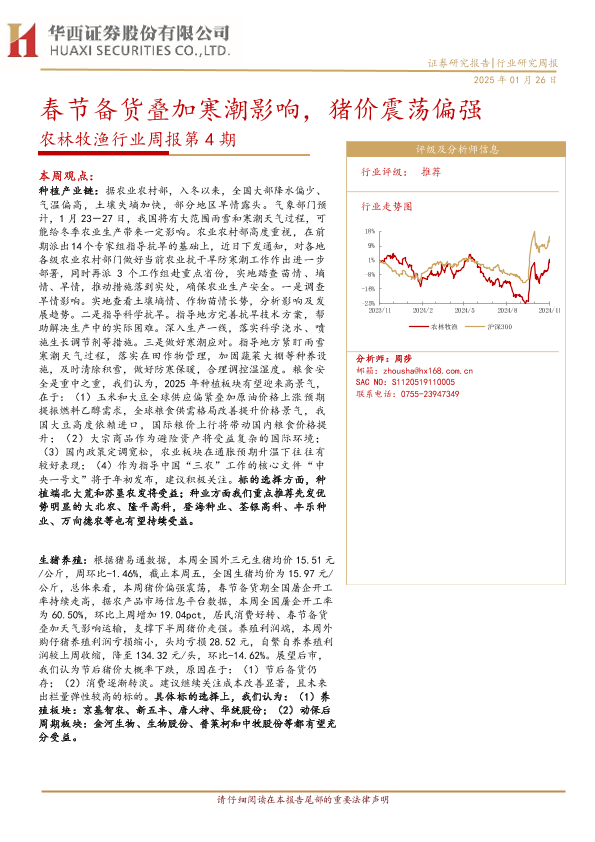 【华西证券】【20250126】农林牧渔行业周报第4期:春节备货叠加寒潮影响,猪价震荡偏强-25页