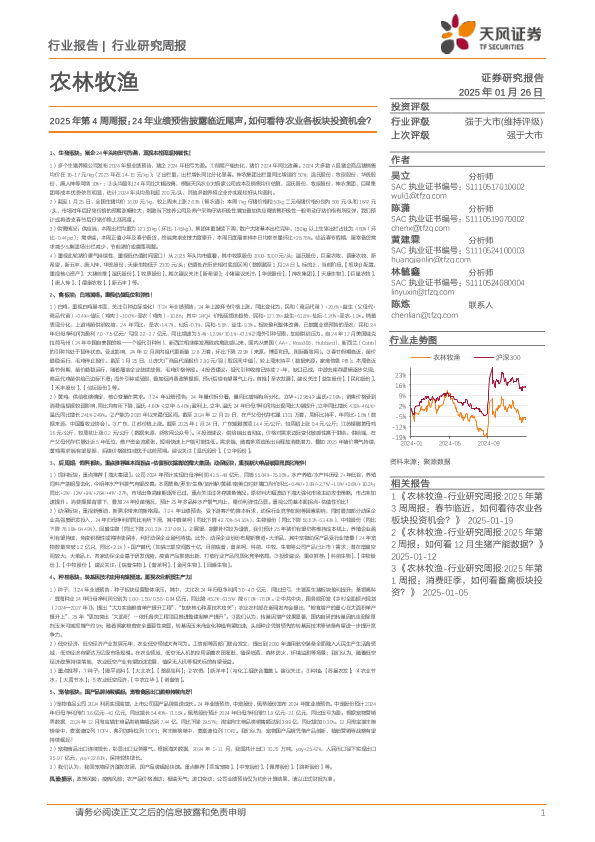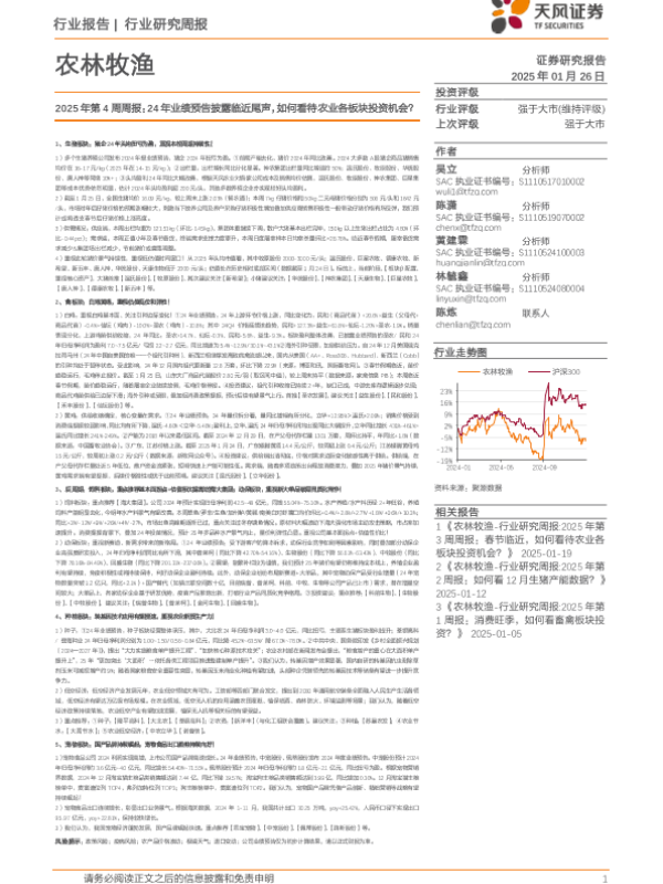 【天风证券】【20250126】2025年第4周周报:24年业绩预告披露临近尾声,如何看待农业各板块投资机会?-15页