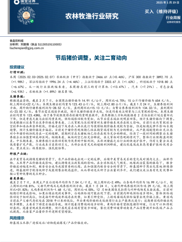 【国金证券】【20250119】20250119-国金证券-农林牧渔行业研究:节后猪价调整,关注二育动向-14页