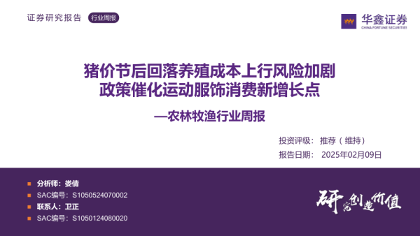 【华鑫证券】【20250209】20250209-华鑫证券-农林牧渔行业周报:猪价节后回落养殖成本上行风险加剧 政策催化运动服饰消费新增长点-32页