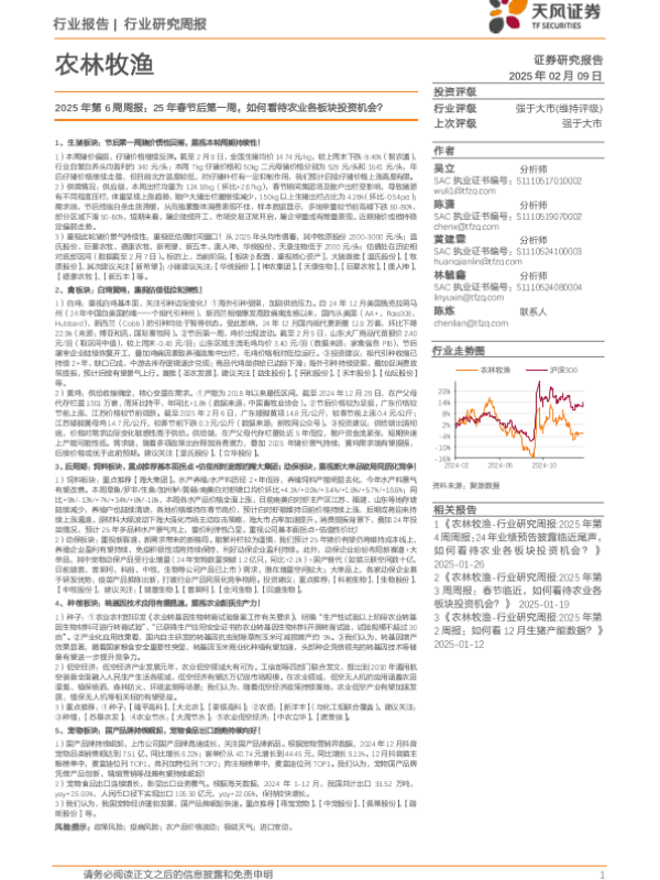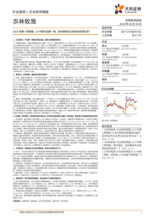 【天风证券】【20250209】2025年第6周周报:25年春节后第一周,如何看待农业各板块投资机会?-14页