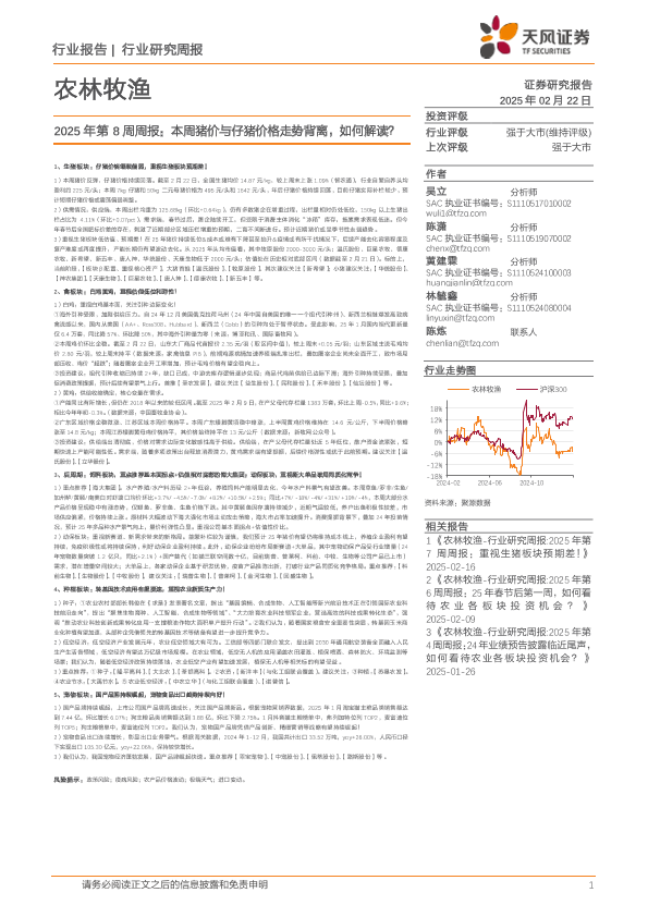 【天风证券】【20250222】农林牧渔2025年第8周周报:本周猪价与仔猪价格走势背离,如何解读?-15页