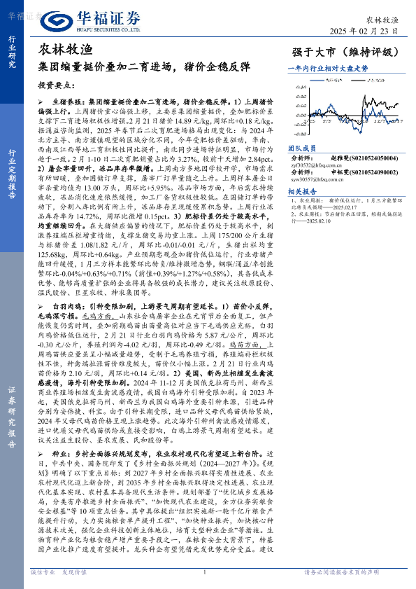【华福证券】【20250223】农林牧渔:集团缩量挺价叠加二育进场,猪价企稳反弹-13页