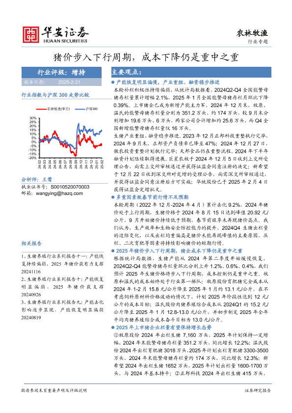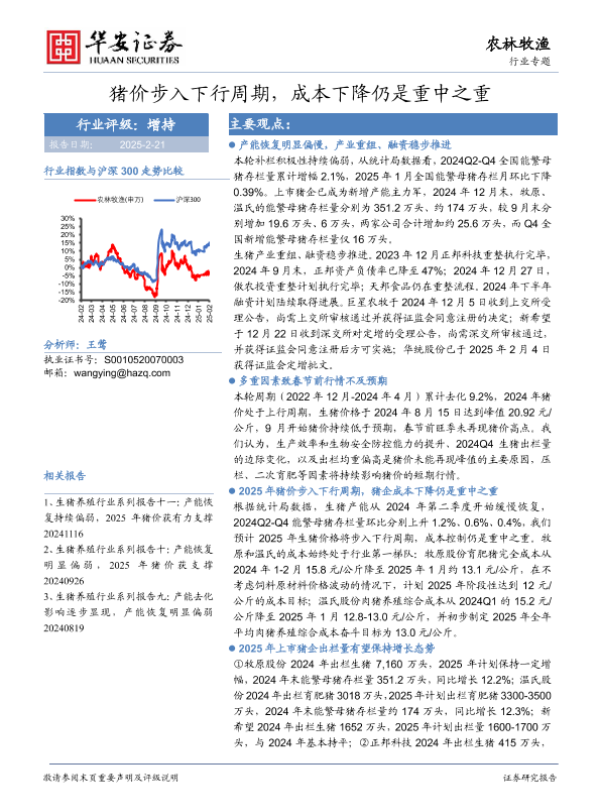 【华安证券】【20250221】20250221-华安证券-农林牧渔行业专题:猪价步入下行周期,成本下降仍是重中之重-19页