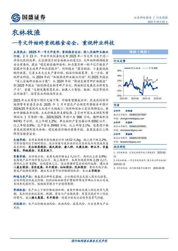 【国盛证券】【20250302】农林牧渔行业周报:一号文件始终重视粮食安全,重视种业科技-12页