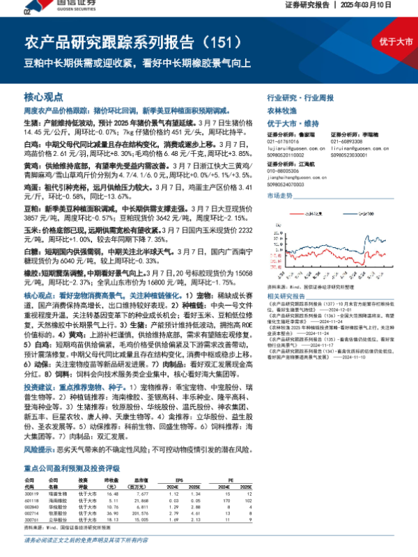 【国信证券】【20250310】20250310-国信证券-农产品研究跟踪系列报告(151):豆粕中长期供需或迎收紧,看好中长期橡胶景气向上-26页