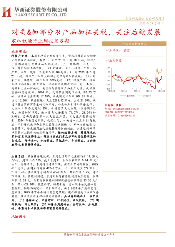 【华西证券】【20250309】20250309-华西证券-农林牧渔行业周报第8期:对美&加部分农产品加征关税,关注后续发展-25页