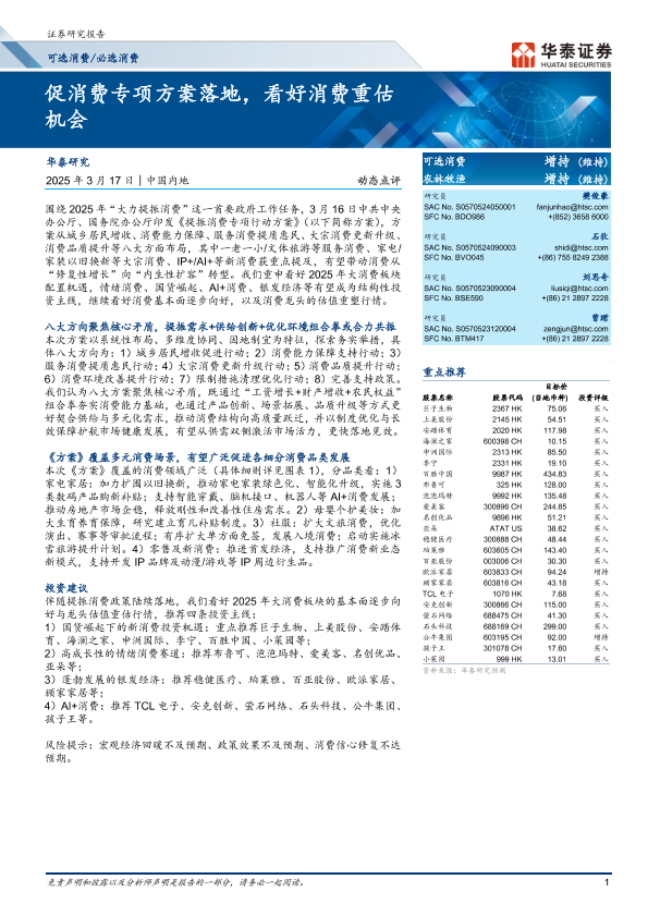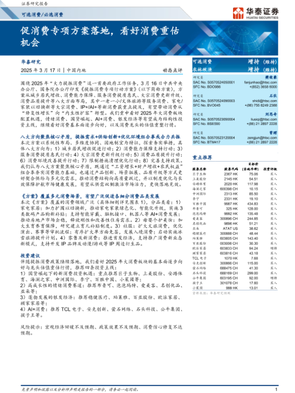 【华泰证券】【20250317】可选消费 必选消费动态点评:促消费专项方案落地,看好消费重估机会-10页