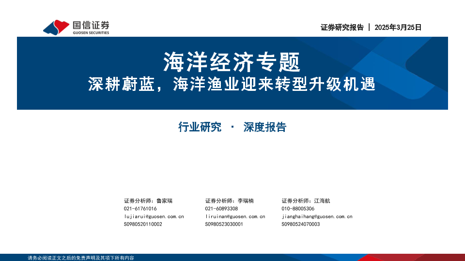 【国信证券】【20250325】深耕蔚蓝,海洋渔业迎来转型升级机遇-17页