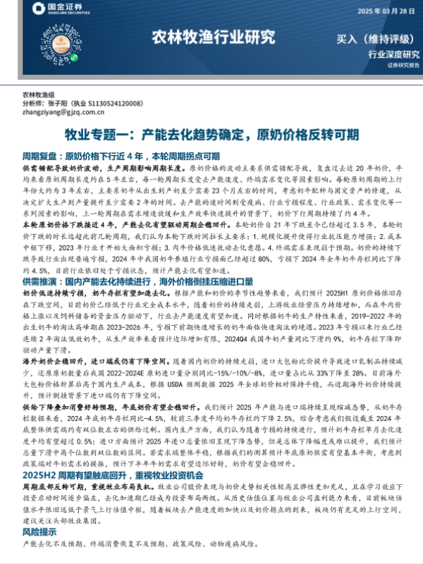 【国金证券】【20250328】牧业专题一:产能去化趋势确定,原奶价格反转可期-23页