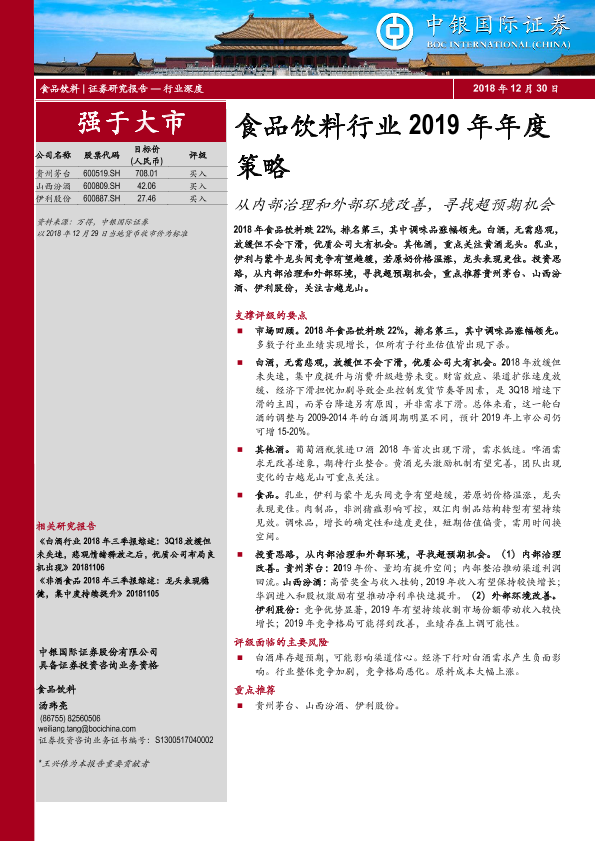 【中银证券】【20181230】食品饮料行业2019年年度策略:从内部治理和外部环境改善,寻找超预期机会-27页