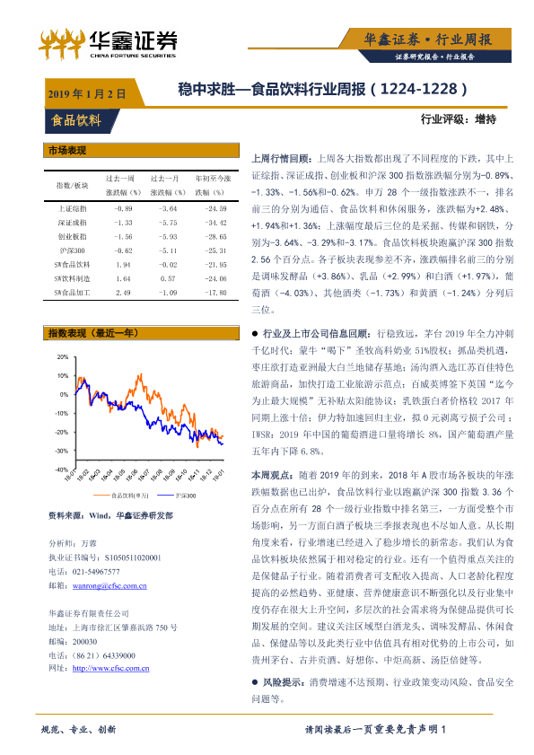 【华鑫证券】【20190102】20190102-华鑫证券-食品饮料行业周报:稳中求胜-11页