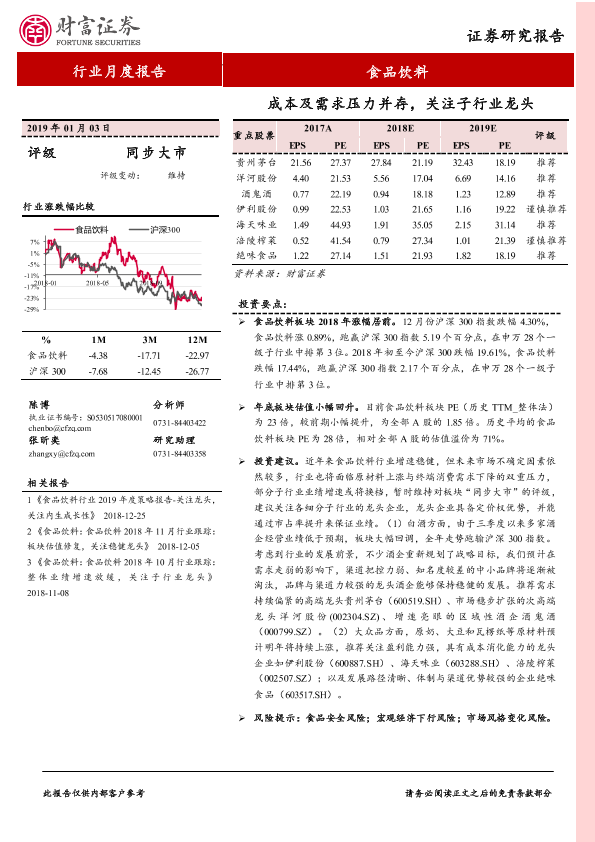 【财信证券】【20190103】食品饮料行业月度报告:成本及需求压力并存,关注子行业龙头-7页