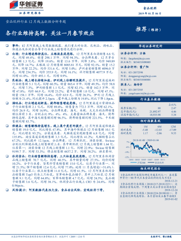 【华创证券】【20190106】食品饮料行业12月线上数据分析专题:各行业维持高增,关注一月春节效应-17页