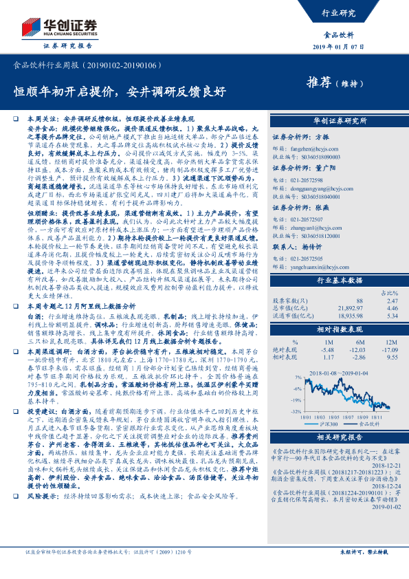 【华创证券】【20190107】20190107-华创证券-食品饮料行业周报:恒顺年初开启提价,安井调研反馈良好-29页