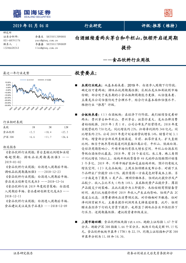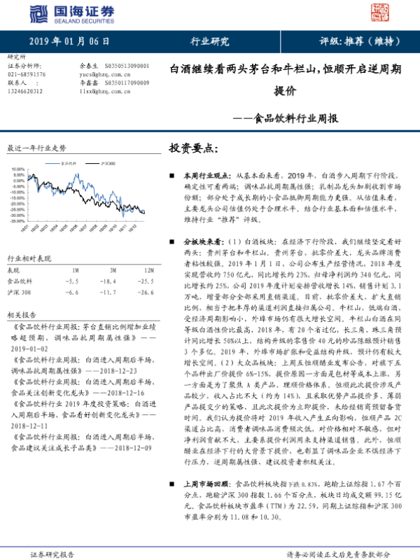 【国海证券】【20190106】食品饮料行业周报:白酒继续看两头茅台和牛栏山,恒顺开启逆周期提价-27页