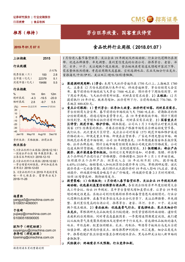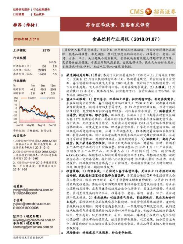 【海通证券】【20190107】食品饮料行业周报:茅台旺季放量,国窖重庆停货-16页