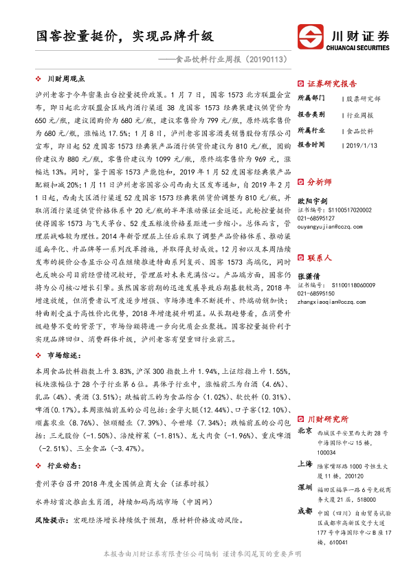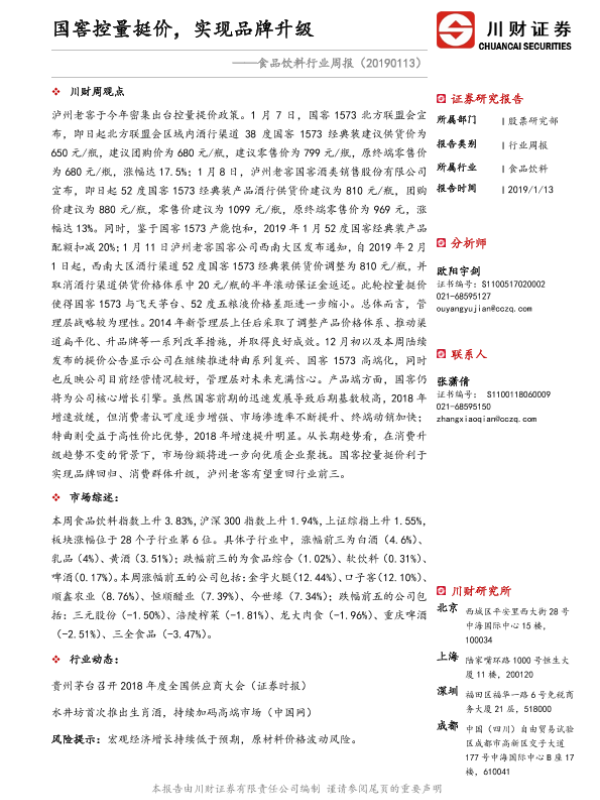【川财证券】【20190113】20190113-川财证券-食品饮料行业周报:国窖控量挺价,实现品牌升级-13页