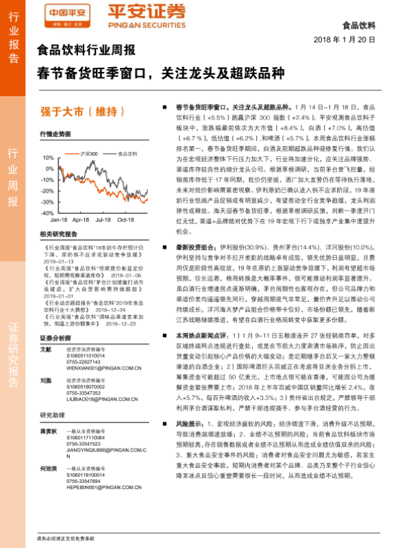 【平安证券】【20190120】20190120-平安证券-食品饮料行业周报:春节备货旺季窗口,关注龙头及超跌品种-19页
