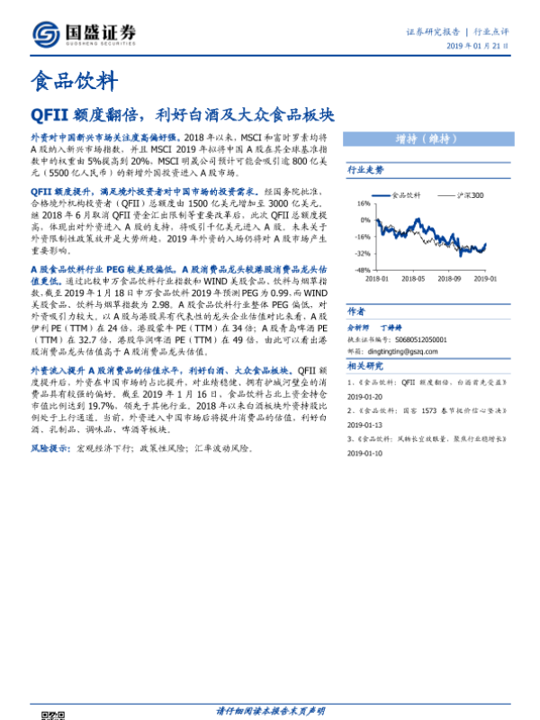 【国盛证券】【20190121】食品饮料行业点评:QFII额度翻倍,利好白酒及大众食品板块-2页