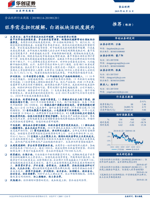 【华创证券】【20190121】食品饮料行业周报:旺季需求担忧缓解,白酒板块活跃度提升-23页