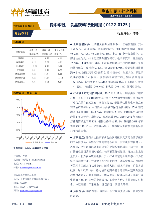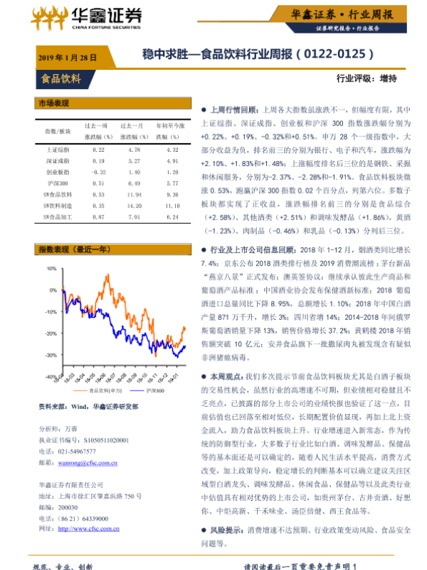 【华鑫证券】【20190128】20190128-华鑫证券-食品饮料行业周报:稳中求胜-12页