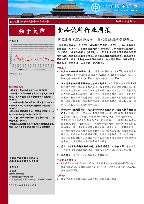 【中银证券】【20190128】20190128-中银证券-食品饮料行业周报:双汇发展重组提高效率,原奶价格温涨趋势确立-17页