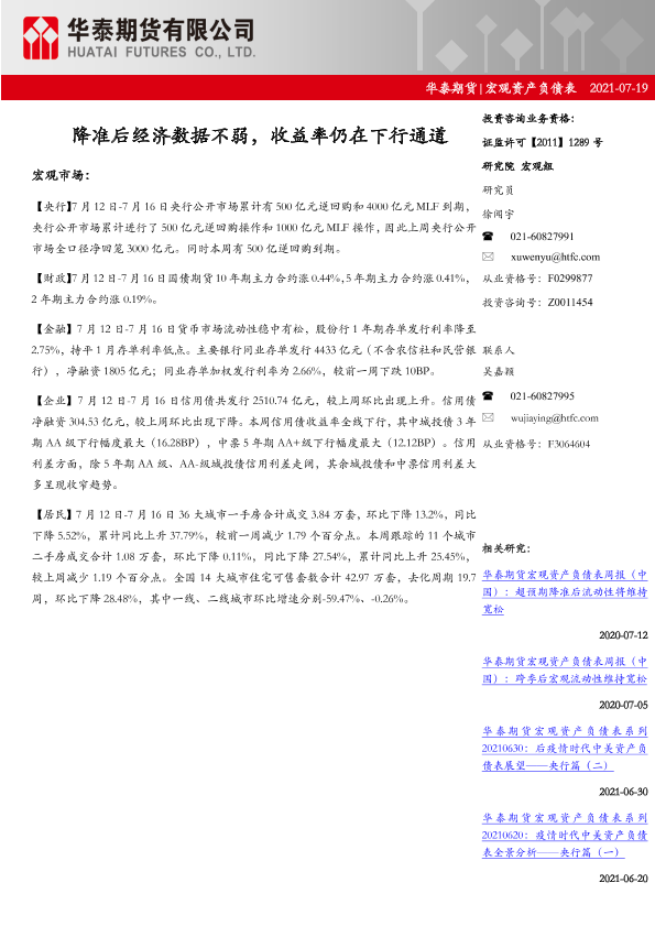 【华泰期货】【20210719】宏观资产负债表:降准后经济数据不弱,收益率仍在下行通道-17页