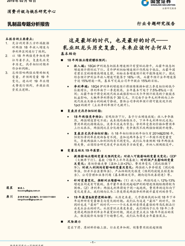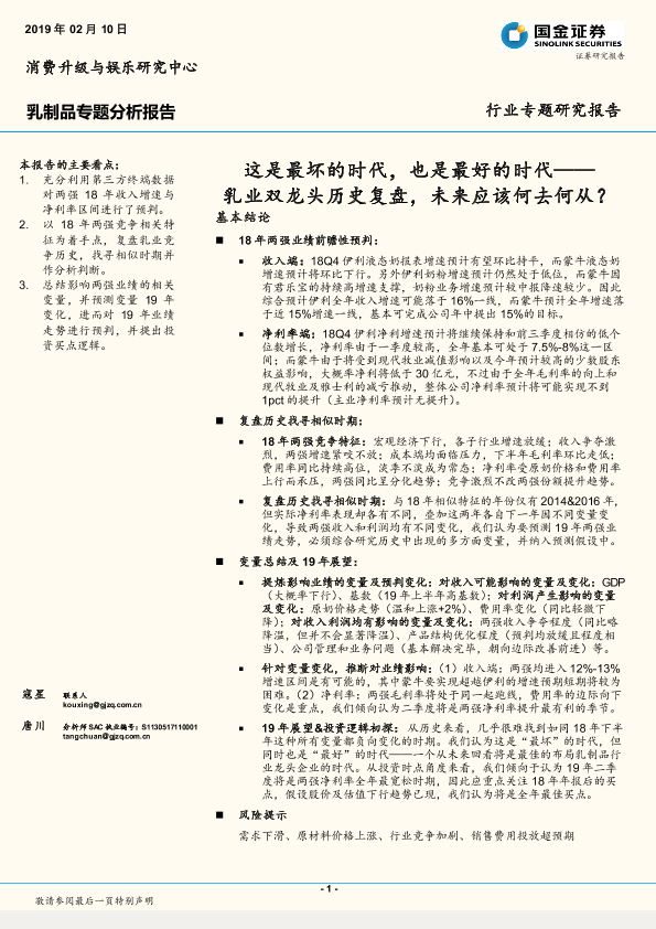 【国金证券】【20190210】20190210-国金证券-乳制品专题分析报告:这是最坏的时代,也是最好的时代——乳业双龙头历史复盘,未来应该何去何从?-22页