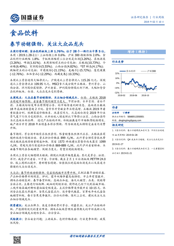 【国盛证券】【20190210】食品饮料行业周报:春节动销强劲,关注大众品龙头-18页