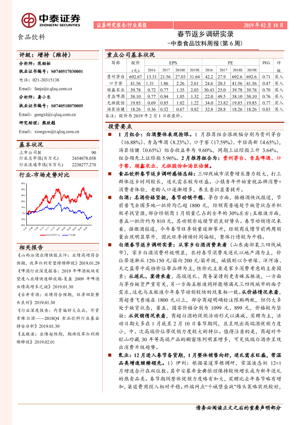 【中泰证券】【20190210】20190210-中泰证券-食品饮料行业周报:春节返乡调研实录-中泰食品饮料周报(第6周)-13页