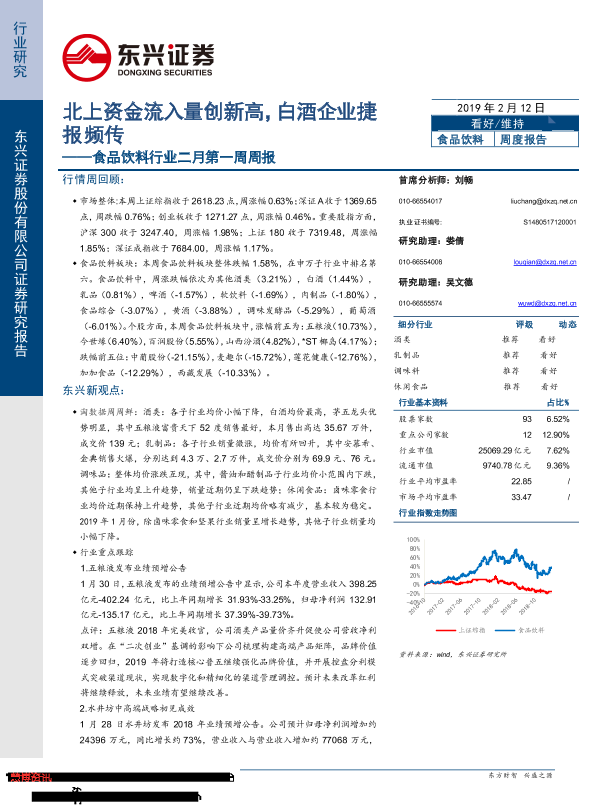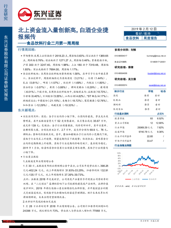 【东兴证券】【20190212】食品饮料行业二月第一周周报:北上资金流入量创新高,白酒企业捷报频传-45页