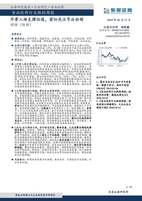 【东吴证券】【20190217】食品饮料行业跟踪周报:外资入场支撑估值,密切关注节后动销-17页