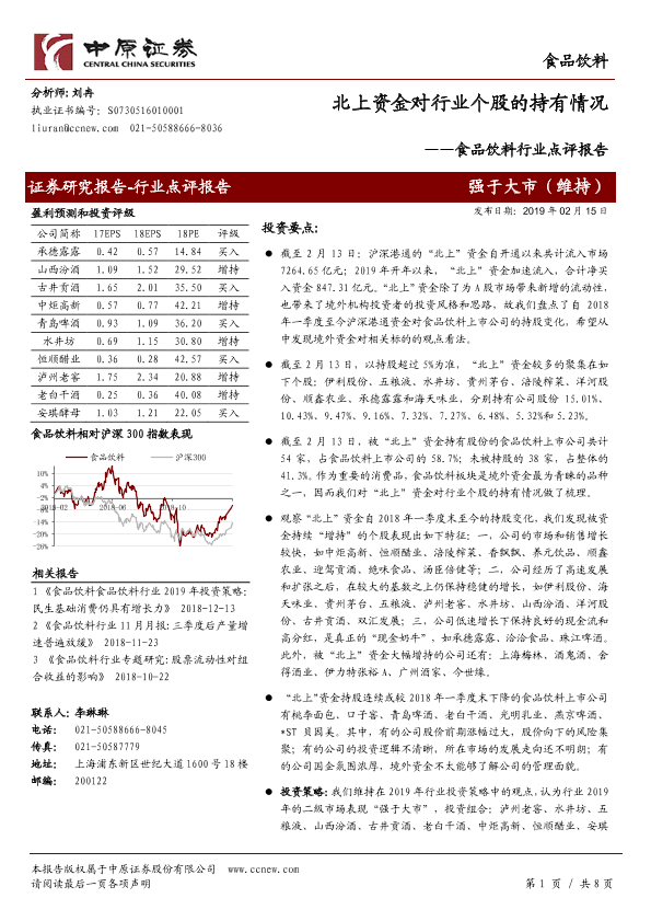 【中原证券】【20190215】食品饮料行业点评报告:北上资金对行业个股的持有情况-8页