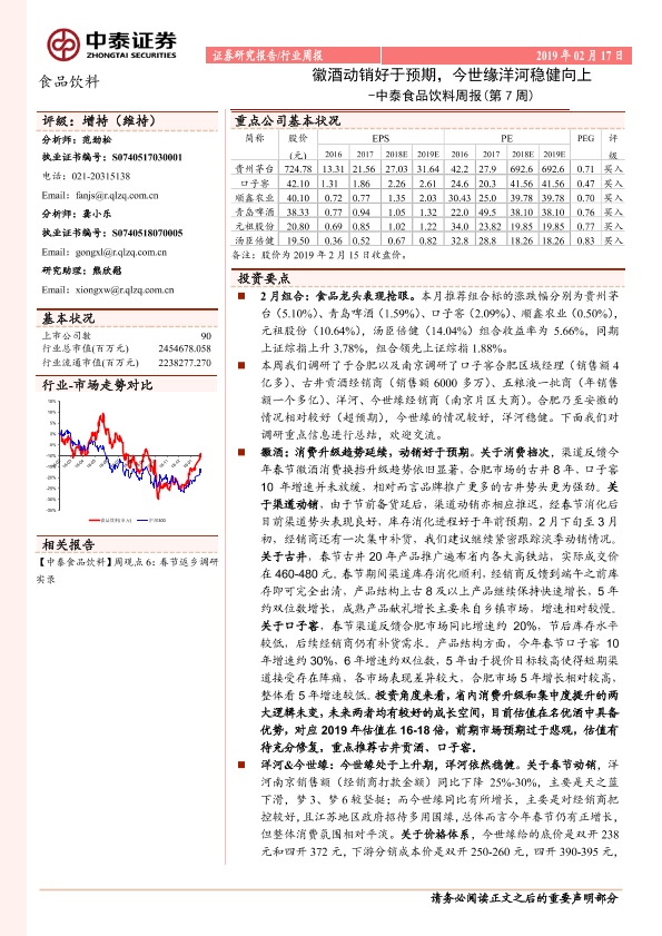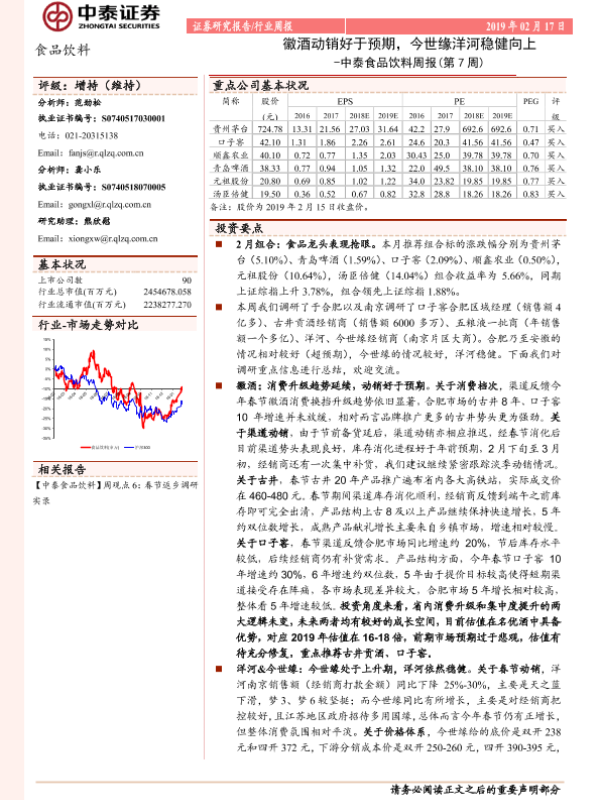 【中泰证券】【20190217】中泰食品饮料周报(第7周):徽酒动销好于预期,今世缘洋河稳健向上-10页