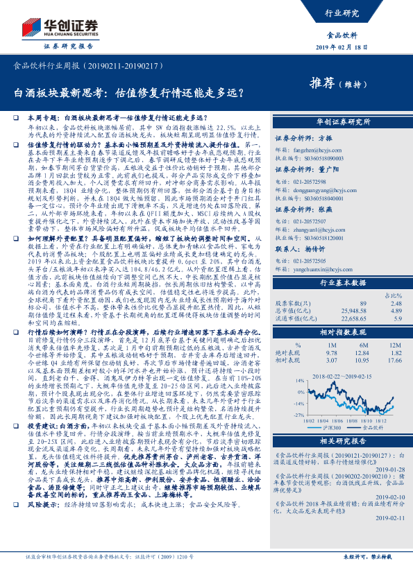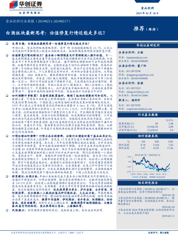 【华创证券】【20190218】食品饮料行业周报:白酒板块最新思考:估值修复行情还能走多远?-27页