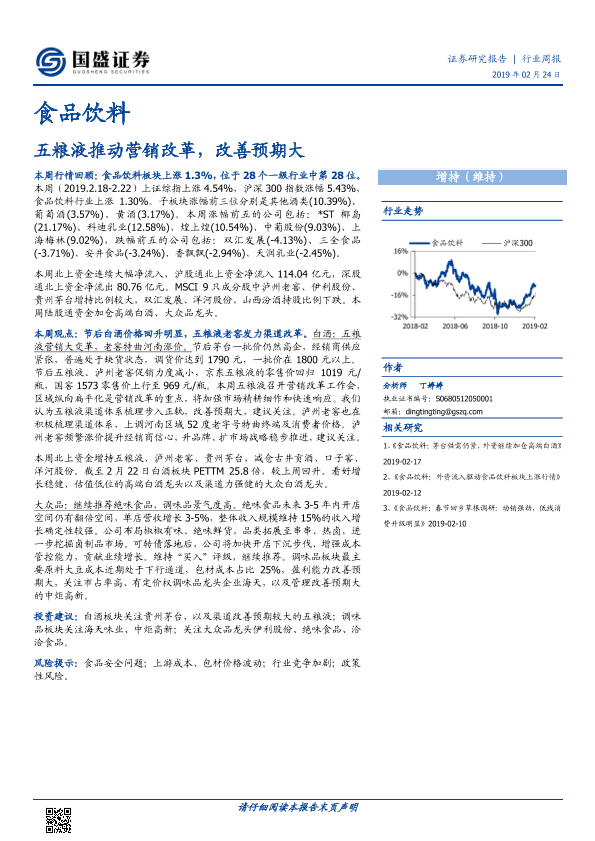 【国盛证券】【20190224】20190224-国盛证券-食品饮料行业周报:五粮液推动营销改革,改善预期大-17页