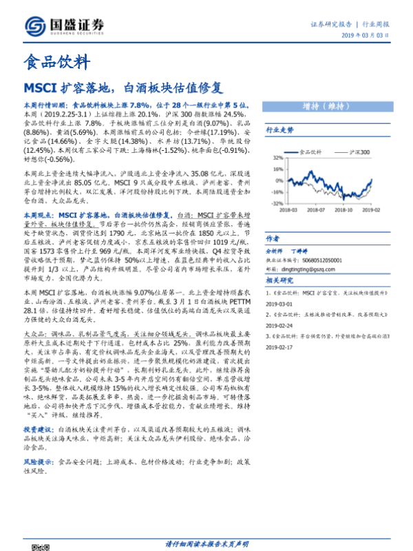 【国盛证券】【20190303】食品饮料行业周报:MSCI扩容落地,白酒板块估值修复-17页