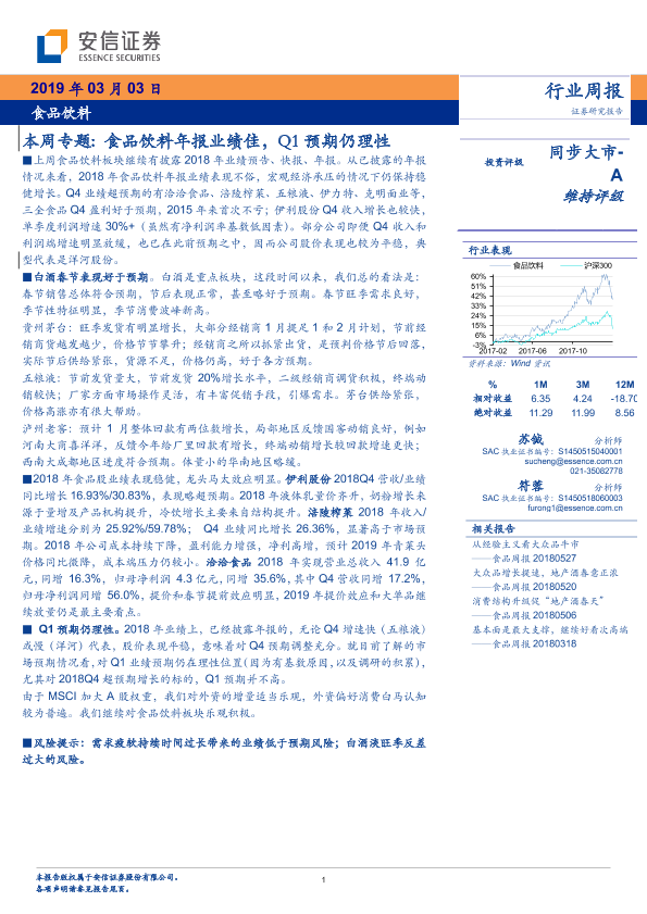 【安信证券】【20190303】食品饮料本周专题:食品饮料年报业绩佳,Q1预期仍理性-26页