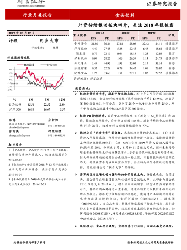 【财信证券】【20190305】食品饮料行业月度报告:外资持续推动板块回升,关注2018年报披露-6页