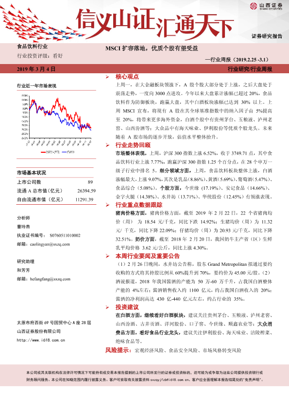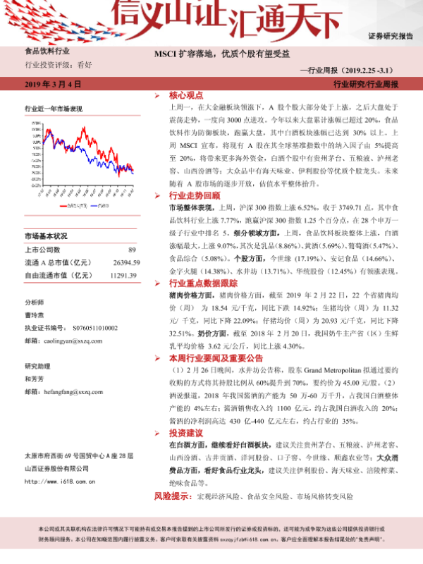 【山西证券】【20190304】20190304-山西证券-食品饮料行业周报:MSCI扩容落地,优质个股有望受益-10页