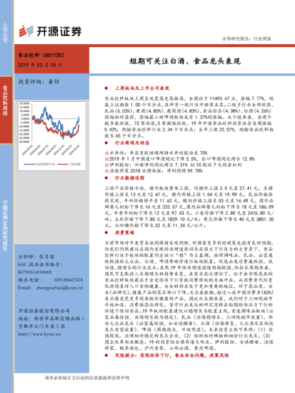 【开源证券】【20190304】20190304-开源证券-食品饮料行业周报:短期可关注白酒、食品龙头表现-15页