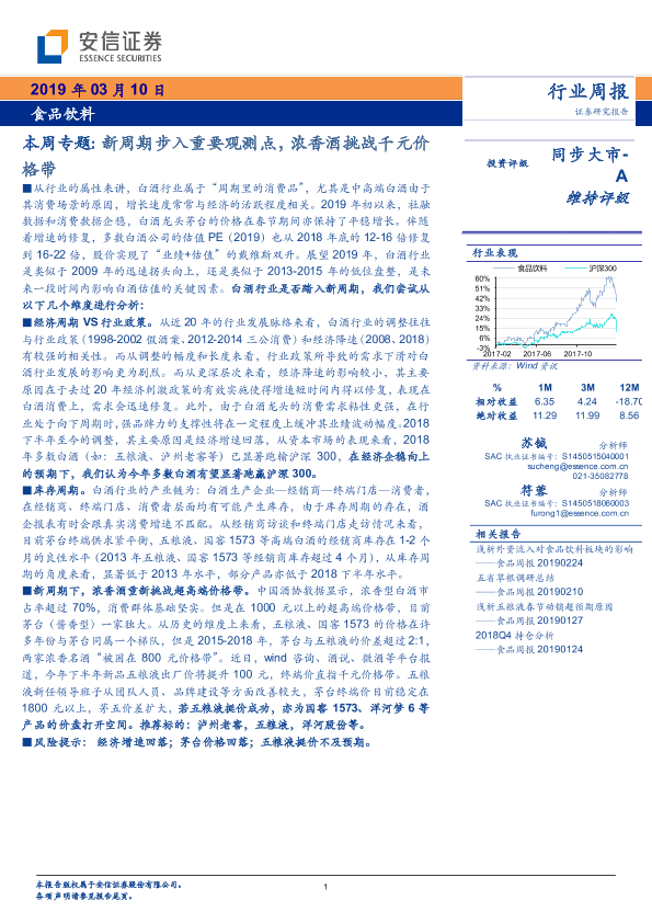 【安信证券】【20190310】20190310-安信证券-食品饮料本周专题:新周期步入重要观测点,浓香酒挑战千元价格带-26页